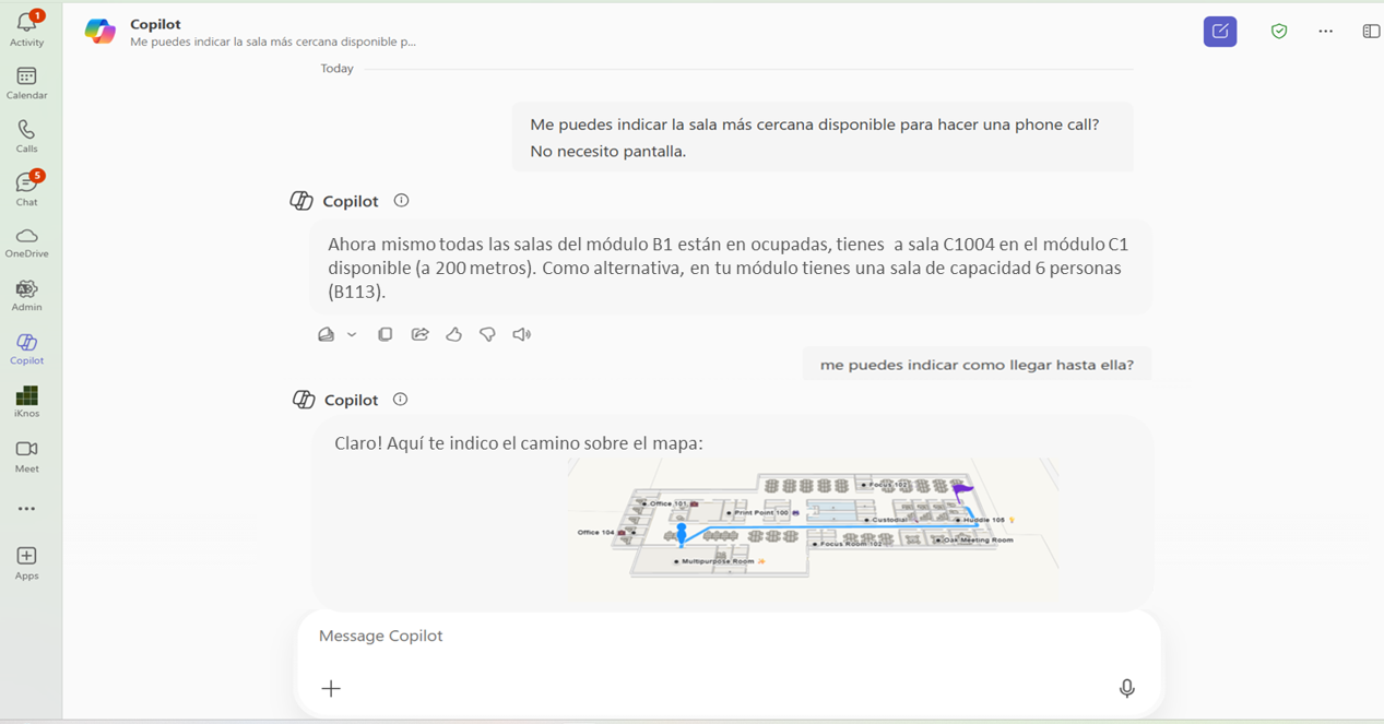 El usuario se lo pide a su asistente corporativo. Ese asistente habla con los agentes de iKnos, que en segundos asignan el espacio óptimo más cercano y, cuando procede, realizan un bloqueo inteligente y temporal. Todo sin el drama de las reservas tradicionales.